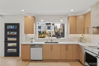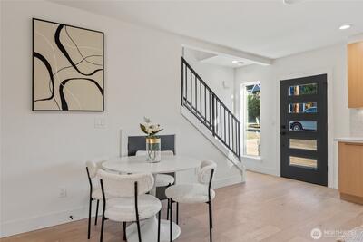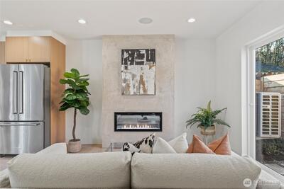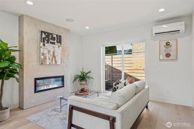 Affordable and thoughtfully designed, this home sits in the heart of a quiet Ballard neighborhood, just minutes from local shops and dining. Engineered hardwood floors and hemlock tongue-and-groove ceilings add warmth and character throughout, while large windows bring in abundant natural light. The kitchen features concrete plastered fireplaces and kitchen hoods and efficient, modern systems including a ductless heat pump for heating and cooling and a hybrid heat pump water heater. A dedicated parking spot adds everyday convenience, making this home a smart, comfortable option in one of Ballard’s most desirable locations.