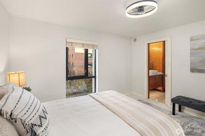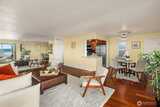 Sunny, light-filled and beautifully updated 3-bedroom corner condo offering sweeping west-facing views of Elliott Bay, West Seattle, and the Olympic Mountains — your own front-row seat to Seattle’s spectacular sunsets! The open floor plan features an elegant kitchen with modern amenities, a large pantry, and a serving bar that opens seamlessly to the dining and living rooms, creating a warm space for everyday living and effortless entertaining. Step onto the covered deck to enjoy fresh air and expansive views year-round — perfect for morning coffee or dining al fresco. The spacious primary bedroom includes an en-suite bath, while two additional bedrooms provide ideal flexibility for guests, office, or creative pursuits. In-unit laundry, generous storage throughout, a secure building, a storage room, and a dedicated secure parking space add comfort and convenience. Strong HOA, pet-friendly, and no rental cap. All of this in a prime location with easy access to local transit, downt