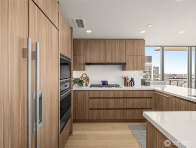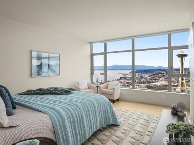 Experience the best of Seattle in this luxurious home in the heart of the city. From sunrise to epic sunsets, enjoy the rhythm of urban life in the Pacific Northwest. Be inspired by the creativity, pulse, action and energy of the neighborhood while retreating to this peaceful sanctuary of sophisticated comfort. Unit 3802 is one of the highest floors and enjoys sweeping views of the Seattle Space Needle, Elliott Bay, and the Olympic Mountains. Watch the ferries as they flow through the Puget Sound creating a postcard from Seattle through every window. The main living area is open and bathed in natural light framed by floor-to-ceiling windows. Enjoy morning coffee on private covered view balcony. 2 bedrooms + office/flex room and 2.5 bath condo. High end kitchen appliances Wake up to sound views in the spacious primary with spa-like en suite and second balcony. Insignia life is unrivaled and residents enjoy 24 hour concierge, fitness center, lap pool & sauna, yoga + pilates studio