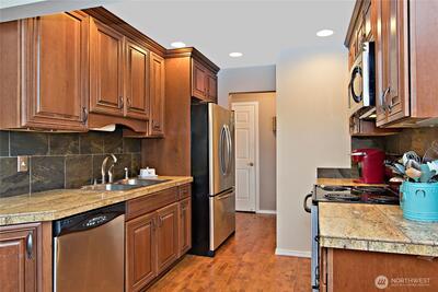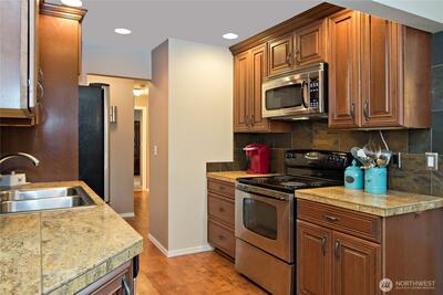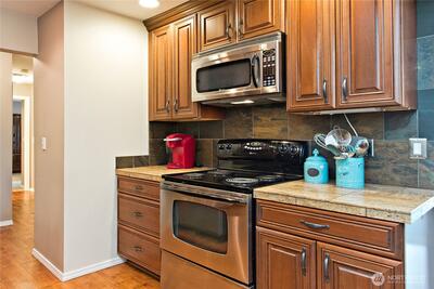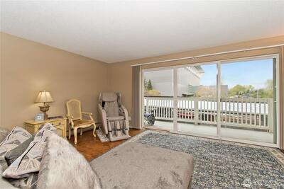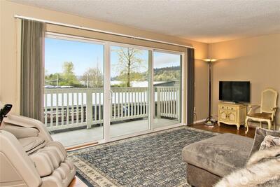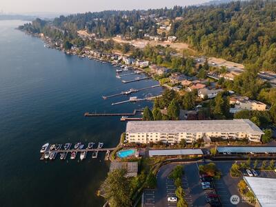 LAKE WASHINGTON VIEWS Welcome to unit 102 at Misty Cove, a south facing condo in the desirableKennydale neighborhood. Beautifully maintained main level unit is updated with hardwood floors and warm paintcolors. Remodeled kitchen has wood cabinets and flows into the open living & dining rooms. Relish the abundant lightcoming through the large sliding glass doors. Primary bedroom has a large closet and private bath. Both bathroomshave been updated with luxury finishes. Relax and enjoy the deck overlooking Lake Washington. One designatedparking spot. Misty Cove homeowner's association amenities include swimming pool & sauna.