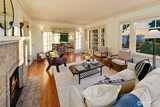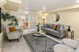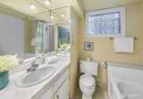 An idyllic garden retreat with lush, established landscaping, meandering pathways, stone patios, and fragrant roses, all overlooking sparkling views of Lake Washington, the snow-capped Cascades, and the Bellevue skyline. This welcoming Cape Cod is filled with charm and light, offering bright, sunny rooms that embrace the surrounding natural beauty. Private and serene, it feels like a true getaway. The classic bungalow features walls of cottage-style windows, oak floors, coved ceilings, and a tile, gas fireplace anchoring the well-proportioned main living space. A lovely dining room captures lake views, while the kitchen offers direct yard access, a cozy breakfast nook with vistas, and abundant storage. Two spacious corner bedrooms and a full bathroom complete the main level. Enjoy multiple outdoor areas for entertaining and quiet contemplation. An added bonus is the fully permitted lower-level ADU studio- ideal for guests, or income potential, with filtered lake and mountain views. A o