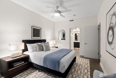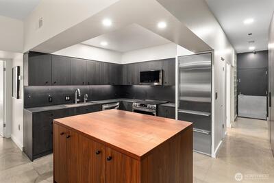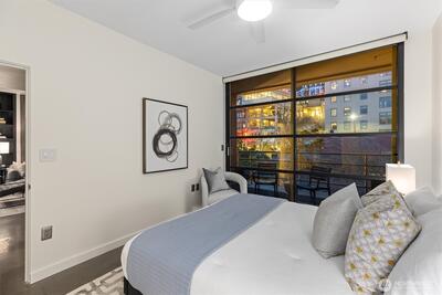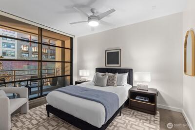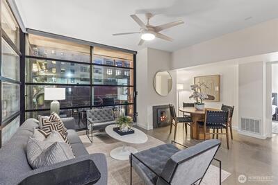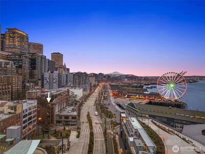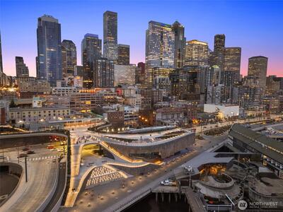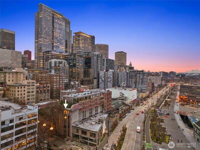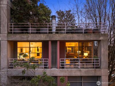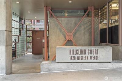 Architecturally significant and thoughtfully remodeled, this corner residence at Hillclimb Court offers a rare opportunity to live within a landmark building designed by Jim Olson. Polished concrete floors and floor-to-ceiling windows define a modern yet warm interior grounded in materiality, proportion, and intentional detail. A new, custom Space Theory kitchen anchors the living spaces and features Sub-Zero refrigeration alongside a refined, design-forward aesthetic. Two bedrooms, two spa-style bathrooms, and two private outdoor areas provide flexibility and comfort. Positioned between Pike Place Market and Seattle’s revitalized waterfront, this is design-driven urban living at its finest.
