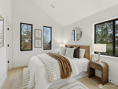 The Hollis is part of the brand-new 28th & Dravus community, Cartwright Built’s latest offering of three thoughtfully designed residences in the heart of sought-after Magnolia. Targeting Certified Built Green 4-Star, this detached two-story cottage features a custom floor-plan with two bedrooms, each with ensuite baths, vaulted ceilings, dedicated EV-ready parking, and a fully fenced private yard with patio. Elevated finishes throughout include thermally modified Radiata Pine siding, Level 5 drywall, a built-in kitchen island, in-ceiling ductless heating and cooling on the main floor, custom closet organizers, and an outdoor storage closet. The home is finished with a refined minimalist aesthetic, blending warm textures and clean lines to create a space that feels both modern and inviting.