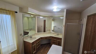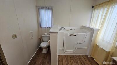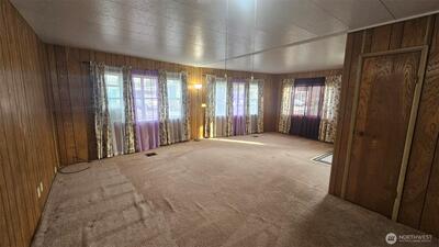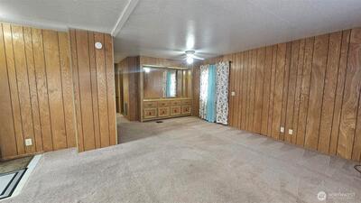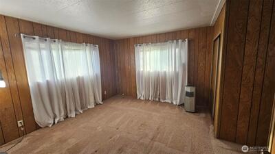 Conveniently located near the freeway in a larger quiet park setting. This large doublewide features a separate living and dining room with 2 beds and 2 baths. The primary bathroom has a walk in jetted tub. Clean, Tidy and ready to move in or, Either some new carpeting or new flooring and it will feel like new.