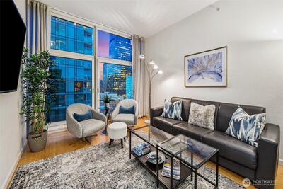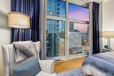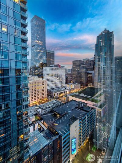 Investor Alert- incredible opportunity to own a world class property in Seattle with 5 star amenities- buy in time to rent short term for Fifa world cup June 2026- 5 star airbb host with 60k income annually. Penthouse Perfect Vacation Getaway with Spectacular City Views at Newmark Tower. Welcome to your dream home/vacation retreat in the heart of downtown Seattle. 25th floor jewel box, Best location, 100 walk & transit score, just a block from Pike Place Market, SAM, Symphony & Light Rail. Spacious open floor plan ~ near 800 sqft, 11 ft floor to ceiling windows, modern remodel, new appliances, paint & lighting. Marble en-suite, full-sized laundry, abundant storage and huge closet, massive bedroom with glorious city views from floor to ceiling windows, hardwood throughout. Ideal as a primary, second home, weekend escape, or for hosting short term guests. 24/7 concierge, Indoor pool, hot tub, sauna, owners lounge, guest suite, gym, biz ctr. 1 parking, 1 storage. No Rental Cap, short ter