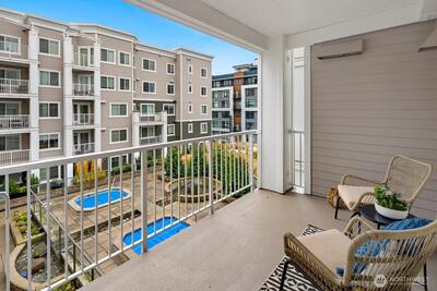 Looking for your upscale, city pied-a-terre? This light bright and spacious 1 bedroom unit in the renowned Ballard Place community features designer touches throughout while offering a wealth of amenities to enjoy. Oversized balcony overlooking the quiet courtyard with two jacuzzies. Heated and secure storage unit as well as one of the best parking spaces in the building. The Ballard Place community provides a full-time concierge staff, gym, sauna, conference & computer room, rooftop deck, pea-patch garden, entertainment lounge & patio for hosting, updated security system & secure parking. All in the heart of Ballard- close to restaurants, shopping, the beach, farmers market, and easy commute downtown. Pet friendly, low dues, and no Rental Cap!