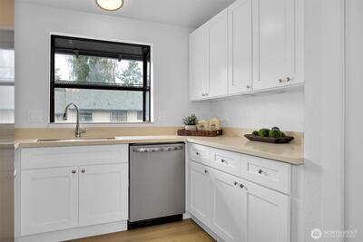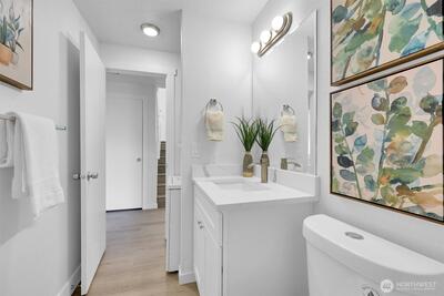Fully remodeled townhouse nestled in the heart of Kent! Low HOA dues. This residence boasts two cozy bedrooms, one and a half baths, a welcoming open living area, vaulted ceilings, a stylish kitchen, and a delightful back patio perfect for relaxing or entertaining. Recent upgrades include: brand new vinyl plank flooring, interior paint, stainless steel appliances, brand new quartz countertop, and white kitchen cabinets. Brand new bathtub, vanity, and toilet, including a convenient washer/dryer. Enjoy the ease of an assigned carport along with ample guest parking. Situated near Kent Station, you'll have easy access to shopping, dining options, and public transit. Commuting is a breeze with quick access to I-167 and I-5.