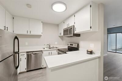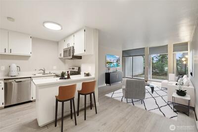 Welcome to this gorgeous, fully remodeled townhome-style condo in the highly sought-after, gated Sixty-01 community. This light-filled home features an expansive living room with a sliding door that opens to a private, covered patio—perfect for relaxing or entertaining. The updated kitchen shines with stainless steel appliances, modern finishes, and a comfortable eating area designed for everyday convenience. An attached carport adds ease and functionality. Sixty-01 is an award-winning, park-like setting spanning 83 acres of winding streets, towering trees, and serene surroundings. The community offers an impressive array of amenities, including four swimming pools, three picturesque lakes, tennis courts, a fitness center with spa, game room, sport court, scenic trails, and inviting gathering spaces. Enjoy close proximity to parks, major employers, shopping, dining, and public transportation, with quick access to both I-405 and SR-520. With no rental cap and no special assessments, t