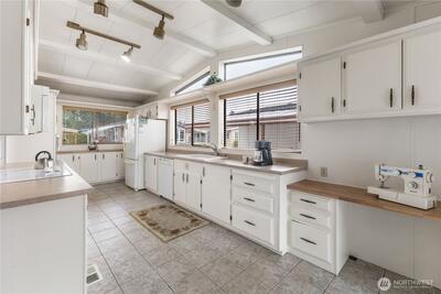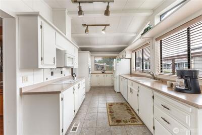 Move-in ready home in Pantera Lago Estates, a desirable 55+ community. Step into a bright and spacious living area with an adjacent dining space, highlighted by soaring vaulted ceilings and abundant natural light throughout. The expansive kitchen offers generous storage and ample counter space, perfect for everyday living and entertaining, also filled with natural light. Enjoy a premier lifestyle in this spacious triple-wide, complete with a large carport and a secure storage shed. Located just steps from the community clubhouse, residents enjoy access to a swimming pool, hot tub, picnic area, and a meeting room with a full kitchen. Ideally situated near shopping, dining, major freeways, Kent Station, and the Sounder train. Ownership transfer subject to park management approval. Don’t miss the opportunity to make this your new home.