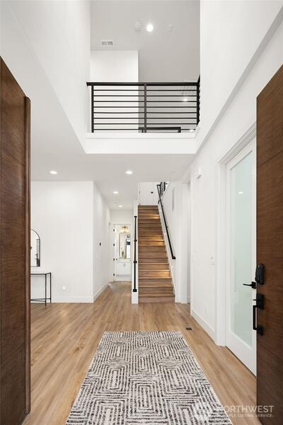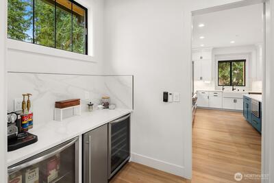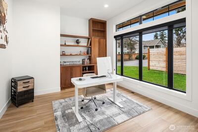 {{Modern Living in Downtown Woodinville}} Design-forward and expertly executed, this 4,120 sq ft. 4-bedroom Woodinville residence delivers modern luxury with warmth and intention throughout. Wide-plank floors, smooth wall finishes, double entry doors, and curated lighting flow into a striking great room anchored by a floor-to-ceiling fireplace. The chef’s kitchen features a 10-ft island, premium Thermador appliances, hidden storage, and a fully appointed butler’s pantry. A main-level guest suite, office study, plus a studio featuring heated floors with patio access offer exceptional first-floor living flexibility. The primary suite is thoughtfully designed with heated floors, a steam shower, and a huge soaking tub. The second level includes two additional spacious bedrooms with walk-in closets & custom packages, one with a private ensuite, plus a bonus loft area ideal for flexible living. NanaWall opens to outdoor spaces, including a covered patio, level yard, and garden space. 2-c