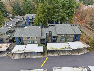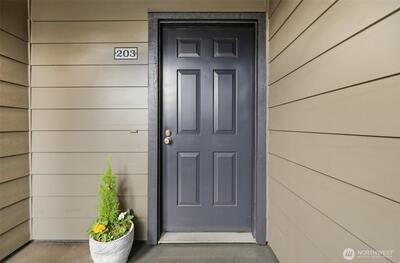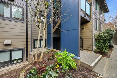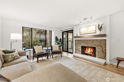 Tucked among mature gardens and old-growth trees, this thoughtfully updated 2-bedroom, 1.75-bath condo feels like a retreat in the city. Oversized living room windows frame lush greenery, which includes rhododendrons, towering evergreens, and a Japanese Maple that comes alive each fall with vibrant yellow leaves. Inside, the home is move-in ready with new luxury vinyl plank flooring, updated lighting, and new appliances, including a washer, dryer, and dishwasher. The layout is both comfortable and functional, featuring a private primary suite, a cozy wood-burning fireplace, and a covered balcony with additional storage. The Park Meridian community completed a $4 million exterior remodel in 2022, including new windows, doors, roof, cement-plank siding, lighting, gutters, and signage offering peace of mind for years to come. Unit 203 was assessed $51,200 for building envelope project will pay off the remaining $38,140 special assessment at closing. Enjoy a well-managed, pet-friendly HO