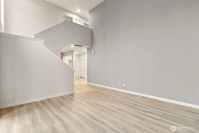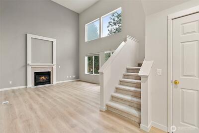 Check out this "condo" that lives like a detached home! The first thing you'll notice when you arrive is the extremely low maintenance front yard. Synthetic grass both in front and back. No mowing!! Once you enter, you'll be captivated by the 20' cathedral ceilings in the living room, highlighted by the large windows letting in so much natural light. New floors throughout the home. LVP downstairs and new carpet up. This home has 3 bedrooms upstairs including the primary suite with attached bath. LOCATION LOCATION LOCATION!! 3 minutes from I-5 and 5 minutes to downtown Kent. Priced aggressively so make your appointment to see it today!