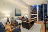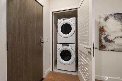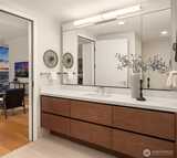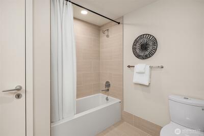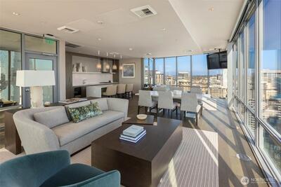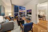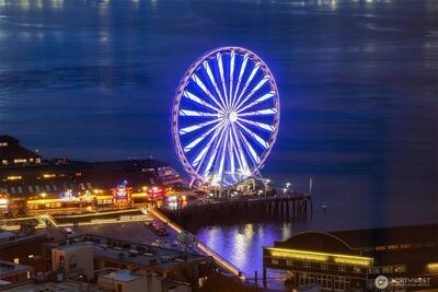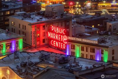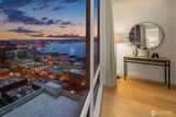 Perched high up on the 18th floor with an incredible vantage point of Seattle's world-famous landmarks, experience the true essence of downtown living. Reside to your living room and be greeted by an unparalleled cityscape, featuring expansive views of the best Seattle has to offer. Pike Place Market, The Great Wheel, and Elliott Bay are all on grand display right from home, and simply a block away to visit in-person. Built in 2021 with modern finishes around every corner, this space has everything you could want for thoughtful urban living - main bedroom sharing the same coveted view, spacious kitchen with gas stove + Bosch appliances + quartz counters + soft-close modern cabinets, and a private office space for the moments you need to slow down from the city bustle. Convenience shines, as resident amenities include 24/7 concierge, fitness/gym, dog play area + dog wash, top floor community lounge with WiFi + event kitchen, rooftop patio, indoor/outdoor entertaining space, and so much