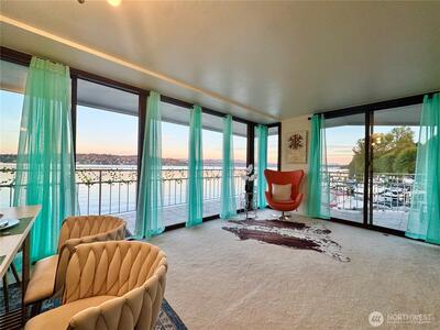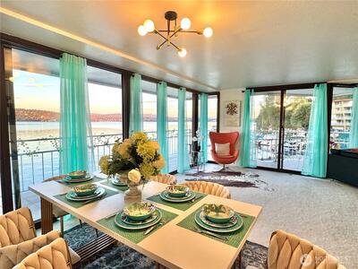 Step into a lifestyle of stunning waterfront views in this 2 bed 1.75 bath end unit Lake Washington condo! Wide opened kitchen wall window provides full lakeview relaxation through wall to ceiling glass doors. Newly renovated bathrooms paired with Quartz countertops, new cabinets, modern faucets and mirrors that add a touch of elegance. Fresh interior paint, brand new washer & dryer installed, remote-controlled wall heaters, and upgraded stylish light fixtures. This peaceful gated community with ample parking space offers a clubhouse, outdoor pool, and a welcoming atmosphere that perfectly blends luxury and comfortability! Easy access to several parks, Kubota Garden, Rainier Yacht Club, excellent dining, shopping, highways and light rail.