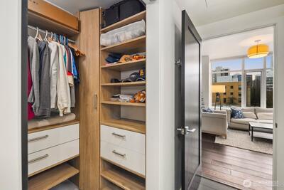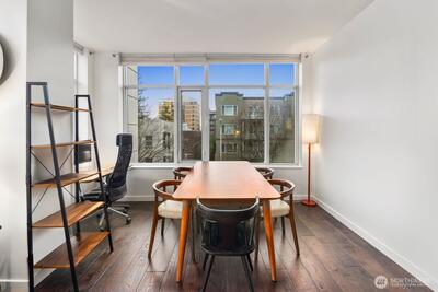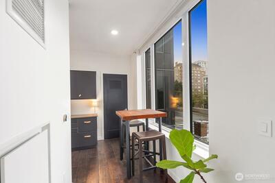 Set within LUMA, a full-service community in the heart of First Hill, this expansive corner one-bedroom offers nearly 1,000 square feet of light-filled living. The open layout features wide-plank wood floors, custom built-ins, a gas kitchen, high ceilings, and full-size laundry, with large windows framing city views throughout. LUMA residents enjoy concierge service, a fitness center, secure parking, and a rooftop lounge with dining spaces and skyline views. A Walk Score of 99 and no rental cap add flexibility and ease