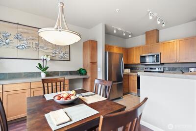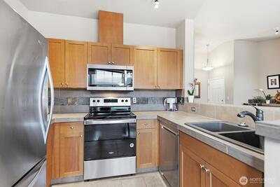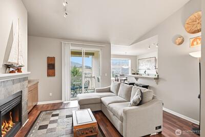 Best view at Daybreak Condos! Top floor Penthouse with vaulted ceilings and amazing views of the Issaquah Alps. Your 2 bedroom home is centrally located in Issaquah, close to shopping, grocery, entertainment, easy access to I-90 freeway and hiking. Remodeled kitchen, custom cabinets, hardwood and slate floors, cozy gas fireplace with new carpet in the primary bedroom, It all adds up to a wonderful home. Pet-friendly community. Lots of guest parking. Strong HOA. No Rental Cap. Walk to transit. Welcome home.