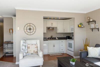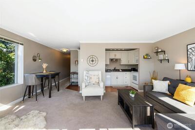 Downtown Kirkland living with Lake Washington views! This bright 1BR/1BA puts you in the heart of downtown Kirkland—steps to the waterfront, parks, marina, coffee and boutiques. Enjoy an updated kitchen, large windows and a covered balcony for year-round sunsets. Easy elevator (or stairs) access from the lobby, plus assigned parking and storage. Community perks include a pool, welcoming lobby and on-site laundry. Minutes to I-405/520 and close to Microsoft, Amazon & Boeing. Live the downtown lifestyle with Lake Washington sunsets!