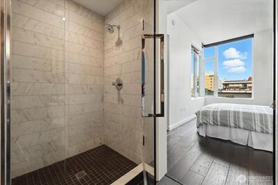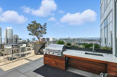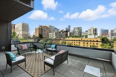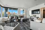 Rare opportunity to own this luxurious corner unit condo with 650 sq feet of private outdoor space across two terraces. This home is perched on the 5th floor with city skyline views, a/c, large windows, engineered hardwood floors, California Closets, Hunter Douglas electric blinds, & designer finishes throughout. This corner unit is one of the building's most unique floorplans. Kitchen includes S/S appliances, gas stove, quartz island & a pull-out pantry. Bedrooms are spacious with the master having its own 5-piece en-suite. Luma amenities include a gym, 24hour concierge, pet run, rooftop lounge & hot tub. With a 99 Walkscore you are within steps to many restaurants, shopping, parks & transit. 1 storage & 1 EV car parking included.