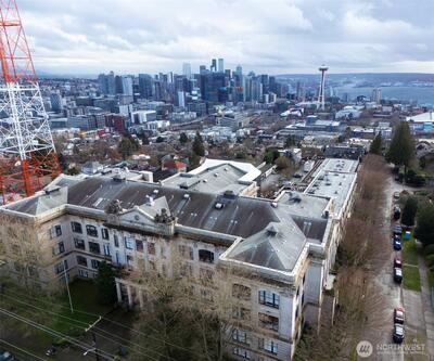 Own a piece of Seattle history! This charming and spacious 1 bedroom unit is located inside the iconic Queen Anne High School building complete with 14-foot ceilings, oversized windows, granite counters, stainless steel appliances, and an open floor plan that is surprisingly conducive to entertaining. And don't forget about the bedroom. Yes, an actual bedroom with four walls, a door, a window, a spacious closet, etc. Not a studio or loft. What a luxury! But wait, there's more! You'll also have access to the rooftop deck for some of Seattle's best views (hello NYE fireworks), covered parking, and individual storage. Pet and rental friendly. All this while being just blocks away from the best Queen Anne offers for dining, nightlife, shopping, schools, and proximity to downtown. Add you own flavor to this vibrant building!