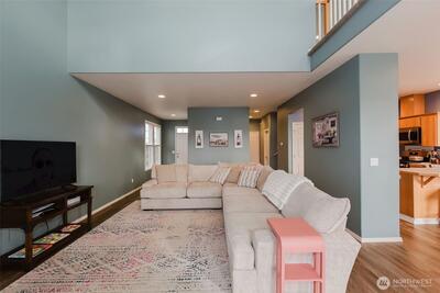 Well-maintained 2,112 sq ft home in the desirable Village at Union Mills. This unique floor plan offers a spacious primary suite, 2.5 baths, and flexible living areas. Vaulted ceilings, skylights, and a cozy gas fireplace create a bright, inviting main living space. Kitchen opens to dining and great room with French doors leading to a private, fully fenced patio. Features include laminate/vinyl flooring, wall-to-wall carpet, jetted tub, walk-in closet, utility room, central A/C, heat pump, and forced air heating. Attached 2-car garage, sprinkler system, and low-maintenance lot. HOA includes common area maintenance. Conveniently located near I-5, transit, shopping, dining, and North Thurston schools.