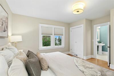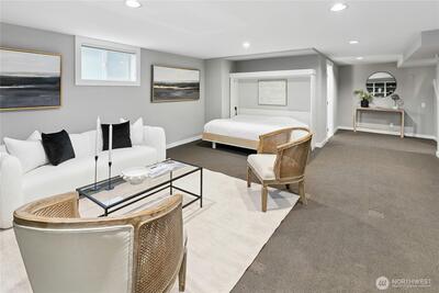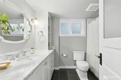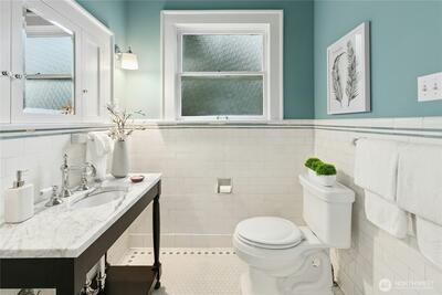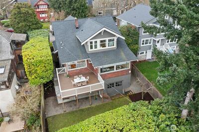 Sitting on a quiet street on top of Queen Anne Hill, this home has modern updates without losing its original charm. It hosts a remodeled kitchen with Carrera marble, custom cabinets, Waterworks fixtures and SS appliances. Exiting the kitchen, walk onto the spacious, private back deck that features stunning views of Mt. Baker and the Cascade Mountains. The dining room, which maintains original-built cabinets, opens into a living room made for entertaining friends. The main level has a flowing, circular floor plan, connecting a bedroom, family room and living room. The upper level is where the primary bedroom and ensuite bathroom are located, along with a laundry room and two additional bedrooms. The lower level has a large bonus room with a Murphy bed, a spectacular wine cellar, full bathroom, second laundry room and a huge open area that would make for a great workshop, gym or anything else your heart desires. All bathrooms have been beautifully updated. All major systems have