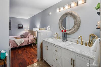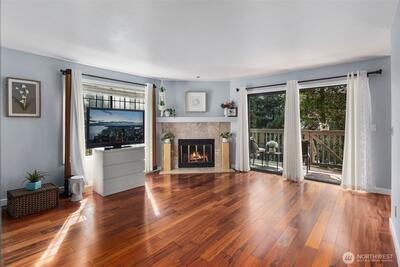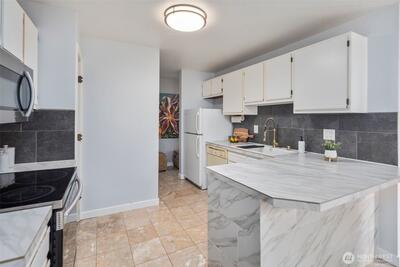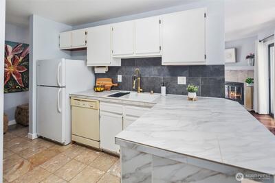 Captivating 1-level condo w/abundant natural light nestled in the heart of desirable Juanita. No Rental Cap! The floor plan boasts an open layout w/bright & airy atmosphere. new LVP flooring throughout + baseboard molding! kitchen features newer ss cooking range, microwave, tile flooring, plenty of storage in cabinets, convenient pantry & breakfast bar. in-unit washer & dryer! Renovated Bathrooms! primary bedroom w/ ensuite bathroom & walk-in closet. Large 2nd bedroom w/spacious closet. Step outside onto the expansive deck leading to lush green grounds, serene views & beautiful sunsets. well run HOA! short walk to Juanita Beach/Juanita Village & Bay Parks! easy access to I-405, beaches, restaurants, shopping, library, Google, DT Kirkland. assigned carport + extra evening parking