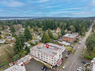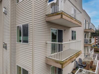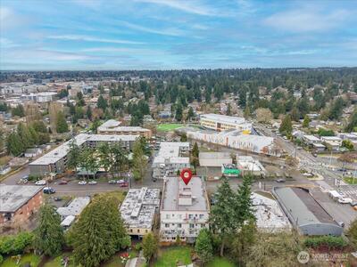 Easy living at its core: Bright and beautifully updated two-bedroom condo in Seattle’s Pinehurst/Lake City neighborhood. Conveniently located near shopping, dining, transit, and everyday amenities, this third-floor home offers zero stairs from entry thanks to elevator access. Perched above the surroundings, the unit enjoys a pleasant outlook and abundant natural light throughout. Features a smart, functional layout with spacious living and dining areas ideal for both relaxing and entertaining. Large windows bring in abundant west-facing light, while the private balcony offers a perfect place to unwind, enjoy afternoon sun, or catch evening sunsets. The kitchen and finishes have been nicely updated, blending modern style with everyday practicality. Both bedrooms are well-sized, with plenty of closet space. Also includes in-unit laundry room and an exceptional amount of storage throughout. Secure parking and additional storage provide convenience and peace of mind. This condo offers co