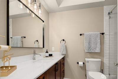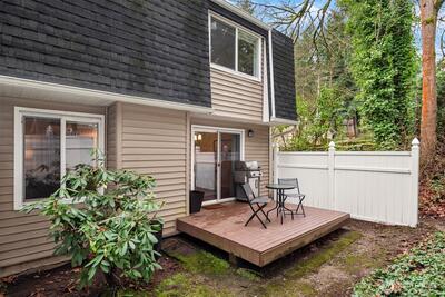 Rare end unit townhome in the coveted Woodridge community of Bellevue. This fully remodeled residence offers a striking exterior featuring timeless Cape Cod style architecture & a sundrenched interior loaded with sophisticated finishes. The open concept main level has been thoughtfully designed for entertaining with dedicated living & dining spaces, chef’s kitchen with eating bar & refreshed powder room. The spacious upper level provides the convenience of 2 large bedrooms both with en-suite baths, including a sumptuous primary suite with walk-in closet & newly remodeled bathroom. Completely renovated down to the studs in 2007, this captivating home boasts solid surface quartz counters, updated appliances, upgraded bathrooms with custom tile, designer fixtures, resurfaced driveway & a new roof. Nestled at the rear of the sought-after Towne complex, this impeccably maintained property lives like a single family home with its own dedicated 2 car garage, garden area, tons of storage & a