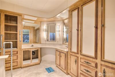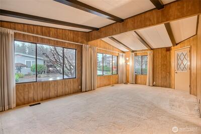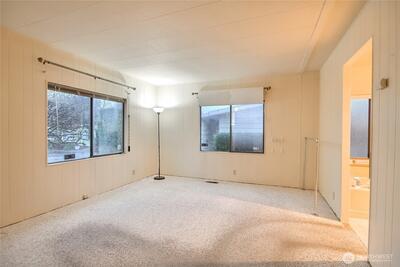 Welcome to Leisure Estates, a sought-after 55+ gated community in Renton! This spacious double-wide manufactured home offers 1,339 sq ft with 2 bedrooms and 1.75 baths. Features include spacious living room with built-in curio cabinet, primary bedroom with ensuite bath including soaking tub, double sink, built-in cabinets and drawers, and kitchen with eating space. Outdoor living space with covered patio/porch off kitchen. Two covered parking spaces in tandem carport. Leisure Estates offers outstanding amenities including a clubhouse, pool, spa, sauna, golf, tennis courts, exercise room, RV parking, sidewalks, and security gate. Park-approved sale required. Convenient location close to shopping, dining, and services.