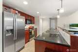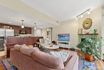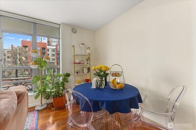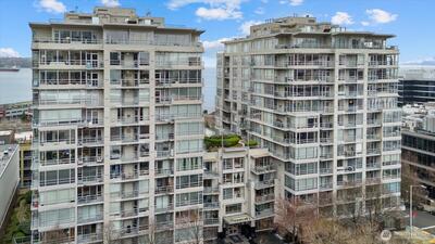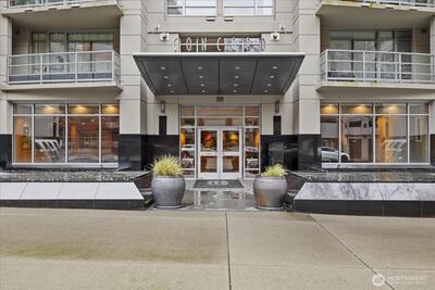 Luxury Condo in First-Class Belltown building - The Concord. Wake up with the Space Needle just outside your bedroom window. Home features a den with French door entry and built-in fold-down bed, as well as spacious private deck for grilling. The open-concept living area has good natural light and features hardwood floors, a gas fireplace, and rare Central A/C for year-round comfort. Gourmet kitchen includes solid slab granite counters and a bar island designed for hosting. Great location in the quieter North end of Belltown, near restaurants and shops. Close to Olympic Sculpture Park, Seattle Center, Climate Pledge Arena, Pike Place Market & the revitalized Waterfront. Enjoy luxury resort-style amenities at this steel & concrete landmark, including 24/7 concierge, spa, sauna & jacuzzi, fitness room, owner's lounge, business center, 6th floor deck with Puget Sound views, and 2nd floor garden with BBQ grills. There’s even a guest suite for your visitors.1 secure parking spot in the ga