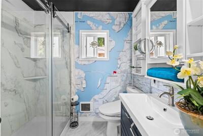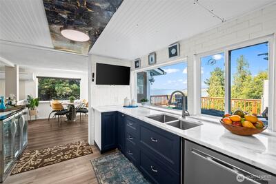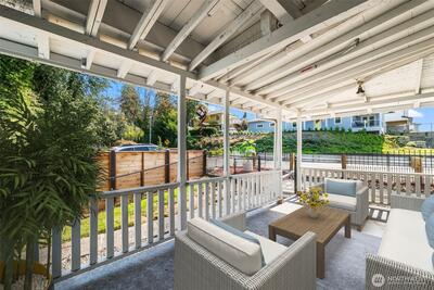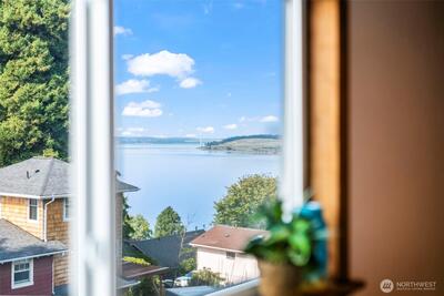 Fabulous water view home back on market due to no fault of its own! Discover timeless charm & modern efficiency in this iconic 1880s Victorian located in the Steilacoom Historical District. This beautifully updated three-level home offers water views & captures sweeping vistas of the Puget Sound, Olympic Mountains & Chambers Bay. A rare main-floor bedroom adds flexibility & convenience, while thoughtful upgrades throughout help you save on utility costs, including solar panels, ductless heating and cooling, a tankless water heater & new 30-year roof. Extensive improvements also include updated plumbing, electrical, windows, appliances, EV charging, and a generator transfer switch, blending peace of mind with modern comfort. The finished basement with separate entrance, kitchenette, full bath, and washer/dryer provides excellent potential for multigenerational living or rental income. Step outside to two expansive decks and a patio, perfect for entertaining, relaxing, or enjoying Fourth