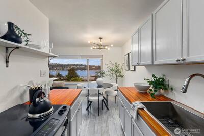 The one you've been waiting for is finally here! Now offering the best price for a view in Eastlake, come take a tour and fall in love. Wake up to one of the most iconic views in Seattle from this beautiful 1 bed, 1 bath condo in the heart of Eastlake. Enjoy sweeping vistas of Lake Union, Gas Works Park, downtown Seattle, seaplanes in flight, and a front-row seat to the Space Needle fireworks show - right from your living room. The interior features fresh paint, butcher block counter tops, stainless steel appliances, and an efficient ductless mini-split. Just two minutes from I-5 and walking distance to Lake Union parks, popular restaurants, charming bakeries, and local shops. Convenience and lifestyle blend perfectly here! Whether you’re watching the boats come in or soaking in the night skyline, all the highlights for your newest chapter are showcased at this condo right from your front door. Welcome Home!