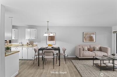 Live or invest with confidence! Ground-floor 1-bedroom, 1-bath condo with a practical, low-maintenance layout. Open living and dining area connects to a functional kitchen with full-size appliances. Sliding door provides access to a private covered patio with fenced boundary. Bedroom includes closet storage and natural light. Efficient electric heat throughout. Assigned parking. Enjoy the popular weekly Farmers Market, seasonal festivals, and a lively neighborhood vibe — making every day feel connected and convenient. HOA allows rentals with no rental cap, supporting long-term ownership or income-focused use. Convenient access to downtown Burien, transit routes, and SR-509 and I-5.