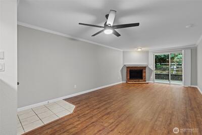 Welcome to Kirkland Springs, where convenience to shopping, restaurants, trails, freeway access, great school districts and easy living is for you. Location is close to Juanita Beach, Village and Totem Lake. This ground floor condo has easy access, has just been completely remodeled! Rooms are spacious and laid out well, oriented to a patio area next to a lovely pond and soothing fountain. The separate laundry room has a full size washer and dryer. The wood burning fireplace is ready to use! A storage room is adjacent to the patio. The covered parking area is close to the condo, and there is plenty of guest parking.No rental cap! The healthy HOA does not have any upcoming special assessments. Fees cover water, sewer and garbage, landscaping and use of a very nice clubhouse (pool, jacuzzi, pool table and exercise room and sports court), with spaces for gathering with your friends.