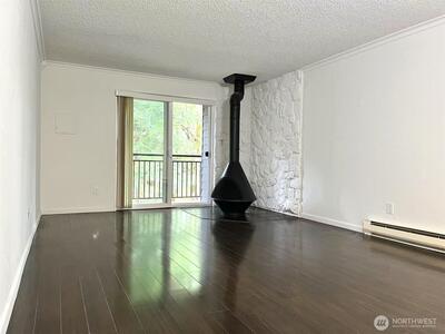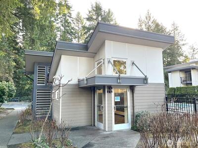 Contemporary architectural building in a highly sought-after community. Prime location across from Microsoft campus, with easy access to highway and light rail. This top-floor end unit boasts gleaming dark laminate flooring throughout. Balcony overlooks a wooded area for excellent privacy and a relaxing view. Cozy up on chilly winter days with the warmth of a charming wood-burning stove. Bedrooms are spacious and light-filled. Updated bathroom. Secured building entry and mail room. Reserved parking in front of the building. Ample visitor stalls nearby. Bus lines in front of community. Proximity to vibrant Overlake shopping area. Enjoy outdoor pool/sports court. No rental cap & special assessment make this an ideal unit for a first-time home buyer or investor.