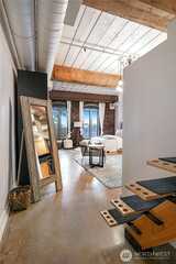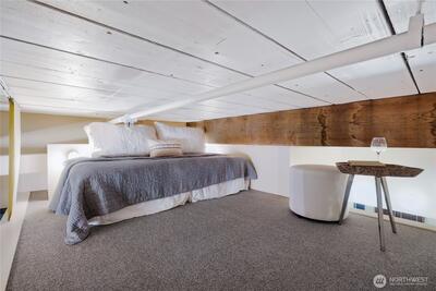 Dreaming of a historic Loft in the iconic Fix/Madore building? Your Dream has arrived! This Unit is in the world-renowned Pike Place Market. Stunning west-facing views to the Sound. Condo offers timeless design additions like exposed brick, old-growth original wood beams, and soaring ceilings. High-gloss cement floors, custom designer wood, and a metal staircase to the charming sleeping loft. All stainless-steel newer appliances. Updated kitchen and bathroom. Hanging barn-style door to your very own custom-designed walk-in closet. Euro-style two-in-one washer/dryer in unit. Wall of living-area cabinets and kitchen butcher block for storage. Don’t miss the famous Zig-Zag cocktail bar in the exact same building! Welcome Home!