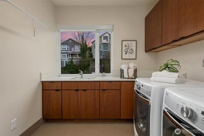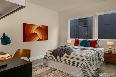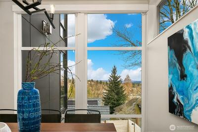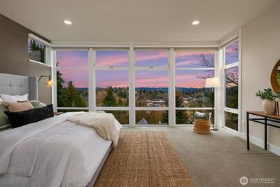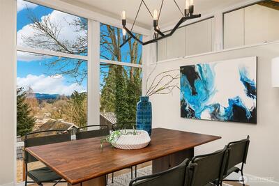Experience modern luxury in this stunning 3,650 sq ft Murray Franklyn home located in the heart of Madison Valley. Designed for seamless living, the open-concept main level features floor-to-ceiling windows that flood the space with natural light and frame panoramic views of the Cascade Mountains, Bellevue skyline, and seasonal sightings of Mt. Rainier. High-end finishes abound, including premium motorized Hunter Douglas shades throughout for effortless, smartphone-controlled privacy and light. The chef’s kitchen flows into the living areas, while the primary suite offers a private sanctuary with dual walk-in closets and a spa-inspired bath. Enjoy year-round entertaining on the spacious rooftop deck—the perfect vantage point for Seafair and fireworks—or in the private fenced backyard with a covered patio. Convenience is built-in with a level entry from the street and garage, plus high-efficiency systems like a tankless water heater. Beyond the front door, you are just blocks f