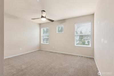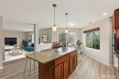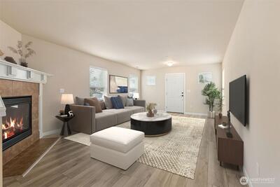 Discover the perfect blend of comfort and natural beauty in this well-maintained DuPont home, where soaring eagles and cheerful songbirds create a peaceful everyday backdrop. Step outside to an extended concrete patio ideal for summer BBQs, morning coffee, or evening gatherings. Inside, the upgraded kitchen impresses with slab granite countertops, a glass bronze tile backsplash, an inviting eating nook, and generous island seating—perfect for entertaining or casual meals. Enjoy the flexibility of two separate living areas, including one anchored by a cozy gas fireplace + hard surface flooring throughout the main level. Retreat to the spacious primary suite and a luxurious five-piece ensuite bath. Upstairs also offers two additional bedrooms, a full bathroom, convenient laundry, and a large loft with room to work, play, or convert to additional living space. Central Air Conditioning and a two-car garage complete the home. Beautifully cared for and thoughtfully designed, this residence