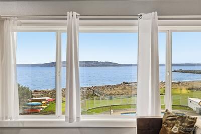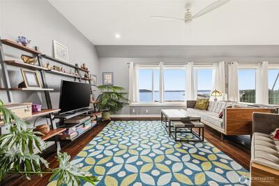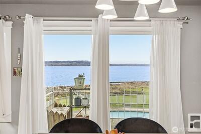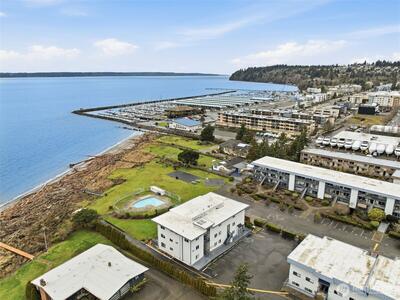 Embrace the best of Pacific Northwest waterfront living in this light-filled, 1,500 sq ft top-floor SW corner condo with a front row seat breathtaking views of the sound and Olympic Mountains from all of the main living spaces and both bedrooms. Southwest-facing windows flood the home with natural light, while the two private balconies—one off the dining room and one from the primary bedroom—invite you to savor morning coffee, salty breezes, and unforgettable sunsets. Spend your days kayaking from the private beach, tending the garden patch, or walking to nearby restaurants, the marina, and the Farmers Market. Community amenities include kayak storage, picnic area, sports court, and private beach access. A rare opportunity to live where adventure, relaxation, and natural beauty come together effortlessly.