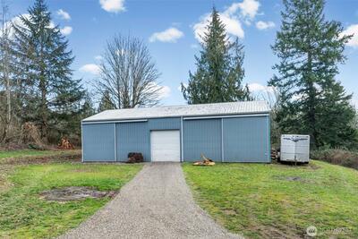 Tucked away in the peaceful countryside, yet just minutes from Highway 410 and everyday conveniences, this special 5-acre property offers the perfect blend of privacy and accessibility. Surrounded by towering trees and natural beauty, it’s an ideal setting for your 4 legged pets, organic farming, or simply enjoying wide open space and fresh air. The beautifully maintained two-story home has been thoughtfully updated and is move-in ready. Inside, you’ll find high ceilings though out the main floor and upstairs there are vaulted ceilings in every bedroom, creating a light and airy feel throughout. The spacious primary suite is a true retreat, featuring its own cozy fireplace, a luxurious bathroom, and a walk-in closet. Outside, the possibilities are endless. A large 30'x60' detached garage provides ample space for equipment, hobbies, or storage, while the land itself offers room to roam, grow, and create your dream rural lifestyle. The home is serviced by well water, with a Kin