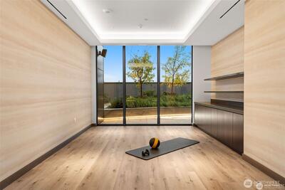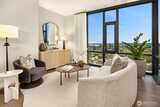 This brand new residence is defined by breathtaking water views and a sense of quiet luxury inside. The expansive primary bedroom commands panoramic views of Lake Washington and the Seattle skyline, while the secondary bedroom is well appointed to serve as a study or guest bedroom. Impeccable design details are included throughout, from Italian-made Ernestomeda cabinetry to German-engineered Gaggenau appliances. The home's interior has been decorated by designer Tara Nelson, inspired by Liquene Dreams. Experience elevated living with 24-hour concierge service and a sophisticated first-floor lobby that sets a tone of refined elegance. Residents enjoy a private, fully equipped fitness center with dedicated yoga studio, a second-floor residential lounge with full kitchen and flexible entertaining space, and a beautifully designed outdoor terrace featuring firepits and a gas grill—perfect for gatherings under the stars. Thoughtfully curated amenities also include a private Dog lounge, do