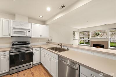 Tucked away on a quiet cul de sac within a gated community, this inviting condo offers comfort and modern convenience in one beautifully updated package. Designed for easy living, the interior features durable LVP flooring throughout. The living room is warm and welcoming, centered around a gas fireplace. The kitchen has been recently refreshed with smart appliances making daily routines simple and efficient. Thoughtful updates continue into the Primary en-suite bathroom, showcasing a walk-in full size shower and stylish new vanity. A programmable furnace thermostat adds energy-conscious convenience and comfort year-round. Well cared for and truly move in ready!