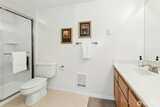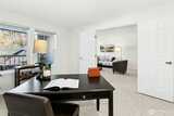 Welcome to Providence Point, a welcoming 55+ neighborhood designed for comfort and connection. This 2 bedroom home with 1 ¾ baths has been refreshed with new paint and carpet throughout. The entryway includes a coat closet, an essential feature for PNW life. The kitchen is to the right as you enter and offers stainless steel appliances, a new sink, and abundant storage in an easy layout. The primary bedroom features an ensuite with an updated low barrier shower, a spacious walk in closet, a linen closet, and its own private deck. The living room is filled with Southern light and provides generous wall space for art and photographs. A long deck extends from the living room and creates a peaceful spot to enjoy morning coffee. A second bedroom that also works well as a den connects to the living room. A closet for a stacked washer and dryer and a full bath complete the layout. The unit includes a separate storage closet down the hall and an end unit garage with extra space. Providence