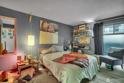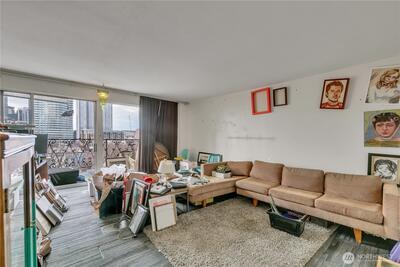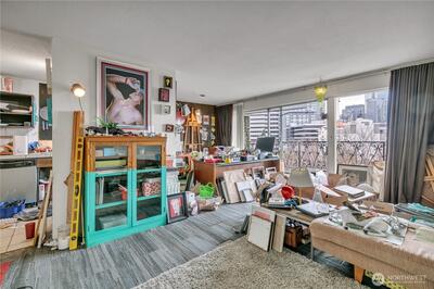 This 1-bedroom lives large with a wall of windows, the expansive view of the skyline. Plenty of opportunity to make this space your own, bring your ideas! En suite washer/dryer, another updated .75 bath and private west-facing balcony round this unit out. Building amenities include an inviting pool, indoor/outdoor owner's lounge, BBQ, laundry room, lobby entry, and 24/7 video security camera system. Short walk to Capitol Hill’s best eateries, shops, and Light Rail Station. Easy access to downtown, I-5, 520, and I-90. Pet-friendly building come view today!