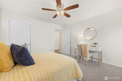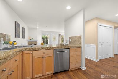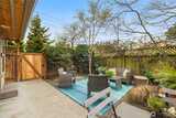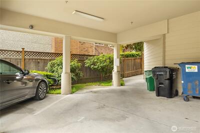 Live your Ballard dream in this ground-floor condo just blocks from the heart of Ballard. Zero steps into the unit. Unique to this condo is its private, fenced yard: Under a lush canopy of dogwood trees, lies a mature garden featuring Jasmine, Camelia's, flowering Quince, turquoise hydrangeas and fragrant daphne. Big windows and an open layout make the space feel bright and welcoming, with room for a true living and dining set-up instead of the usual “condo compromise.” The kitchen gives you plenty of counter space, great storage, and a breakfast bar that’s perfect for casual meals or spreading out your laptop. Cozy up to the remote controlled fireplace in the living room with your morning coffee. The bedroom is comfortably sized, with a walk in closet and easy access to the full bath and in-unit laundry—yes, you can finally ditch the laundry cart. Unit features a fully fenced outdoor yard, a rarity with condos. There is newer laminate floors in the public spaces, and carpe
