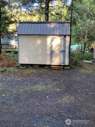 Nice level lot in Division 5. This lot has water and power, and a nice-sized outbuilding. This lot backs up to Dow Creek. Nice peaceful setting looking out at greenbelt. Good location not far from the golf course and a short drive to either lake. This is worth seeing. There is also a new storage shed for all your toys. Come and enjoy all of Lake Cushman amenities: parks, lakes, boat ramps, fishing, swimming, golfing and hiking.