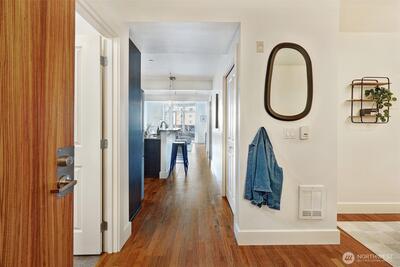 Live in the heart of Belltown in this bright and spacious 1-bedroom + den at The Matae. Floor-to-ceiling windows with peeks of the Sound and Space Needle - showing that you are in the middle of everything Seattle has to offer. Enjoy the rare bonus room that can be used as an office, dining space, or be converted into a flex space. You will also appreciate the in-unit laundry with a 1/2 bath for guests. From there, the design flows into a roomy kitchen with plenty of storage and space to cook your favorite meals. Retreat to the primary suite with double vanity, tiled floors, oversized double closet and private balcony. Enjoy top-notch amenities like a party-ready club room, fitness center, and rooftop decks with unforgettable city and water views. Entertain guests on New Year's Eve to watch the Space Needle fireworks, walk to Climate Pledge, The Waterfront, Amazon and shopping. No need to deal with concert parking, you can walk there in minutes. No Rental Cap, Pets ok and no Assessment.