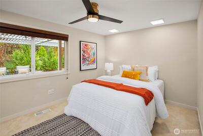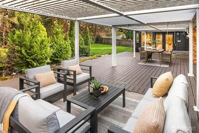 Quintessential rambler on a lush, shy 1/2 acre, level lot in coveted Newport Shores—perfectly designed for multi-generational living or an ideal mother-in-law setup. 6 bedrooms including 3 with en suite baths. Tucked behind mature landscaping, the private backyard retreat offers a serene garden oasis and patio with hot tub —creating a peaceful, level outdoor haven for gatherings of all ages. Enough parking for up to 6 vehicles! Inside, casual elegance meets everyday comfort with an open-concept layout that seamlessly connects living spaces while still offering privacy where it matters most. Two spacious primary suites provide flexible living options—ideal for extended household living, long-term guests, or a private MIL retreat. A versatile den adds even more functionality, whether for a home office, media room, or additional flex space. Enjoy resort-style, year-round neighborhood amenities including a community pool, tennis and pickleball courts, volleyball, and a clubhouse ove