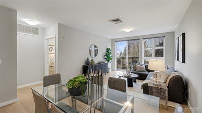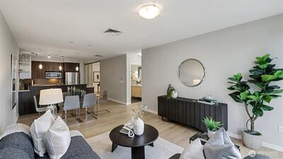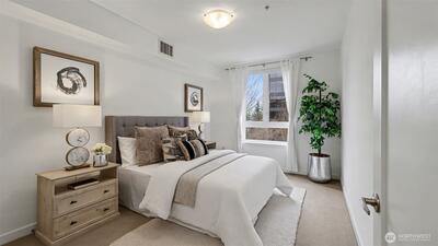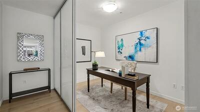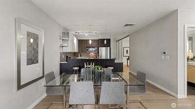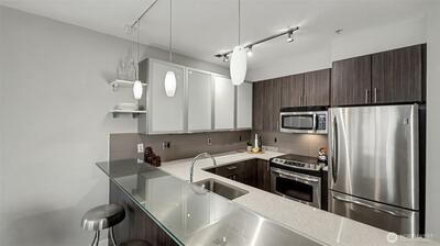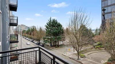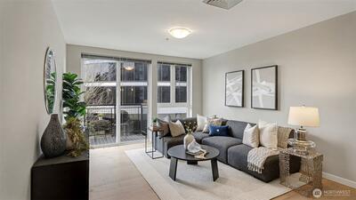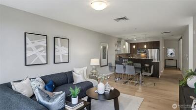 Check every box on your wish list - Westerly views of the Puget Sound from the comfort of your living room and bedroom versus having to trek up to a community rooftop to see the sun, prime urban location with everything right out your doorstep but just far enough removed from the hustle and bustle to still enjoy some peace and quiet, world class waterfront and Olympic Sculpture Park and trails right across the street, spacious primary suite with walk-in closet, office/den with frosted glass doors which perfectly doubles as a guest room, central air conditioning, floor-to-ceiling windows, affordable price, all in a secure building with concierge and garage parking. On trend engineered hardwood floors recently installed and virtually all of the appliances including HVAC system have been replaced within the last 2 years. Trio Condos offers a rooftop deck with views of the Space Needle, Mt Rainier and Elliot Bay; well run community with reasonable HOA dues; lounge and billiards room; pet f