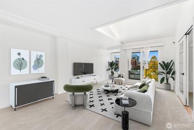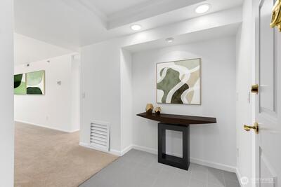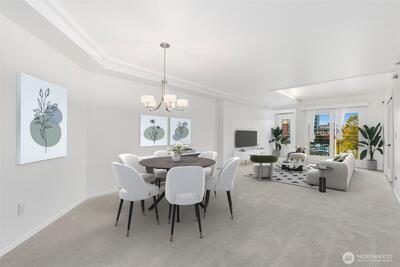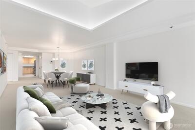 Spacious modern condo in the heart of downtown Bellevue! This light-filled 2 bed, 2 bath home features an open layout, tall ceilings, and an updated kitchen with stainless steel appliances. The second bedroom offers flexibility as a guest room or den. Enjoy a private balcony with city views and a spacious primary suite with walk-in closet and ensuite bath. Secure building with elevator, storage, and two generous parking stalls. Additional upgrade includes recirculating pump for hot water. Steps to Bellevue Square, parks, future light rail, and the Bellevue Library across the street!